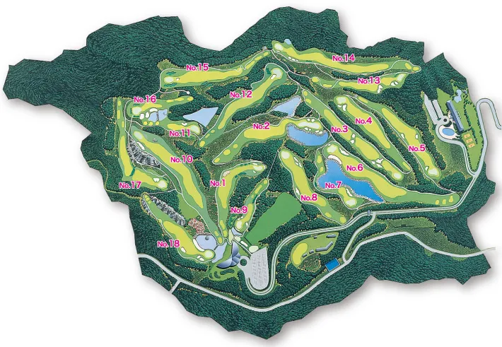 八幡の社に息づく自然を生かした戦略性の高い都市型丘陵コースです。