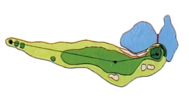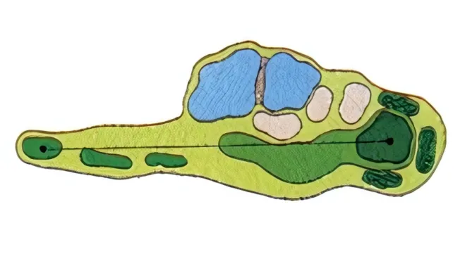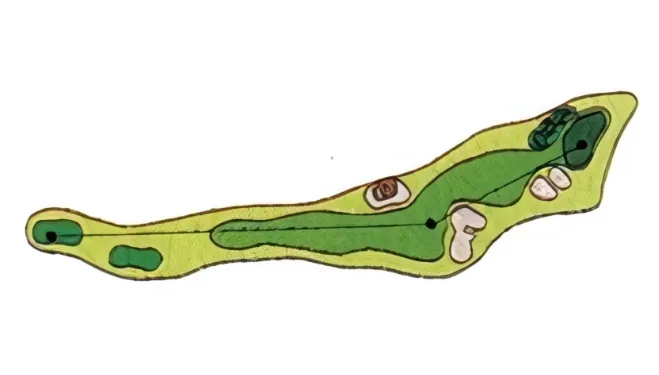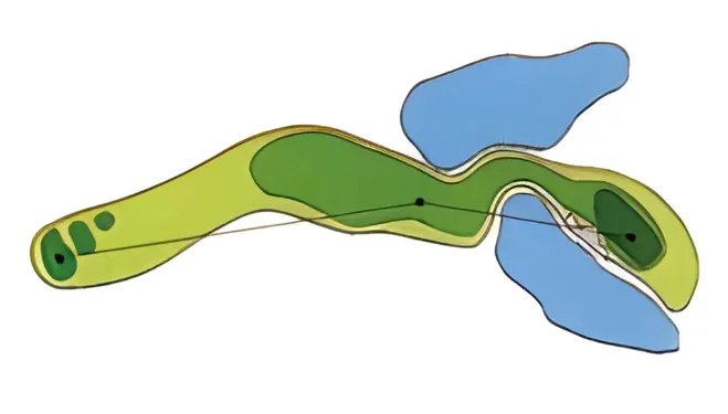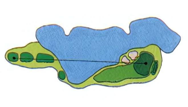 まるで計算されたかのような完璧な配置で、現在ではコースを代表するホールとなっています。